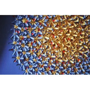 “The Birth of an Idea” is a large-scale abstract series of artworks that transforms painted silk cocoons into luminous, circular compositions, balancing the tension between emergence and quietude. Reduction to essential form allows color to act as a direct emotional language, evoking introspective and transcendent states.