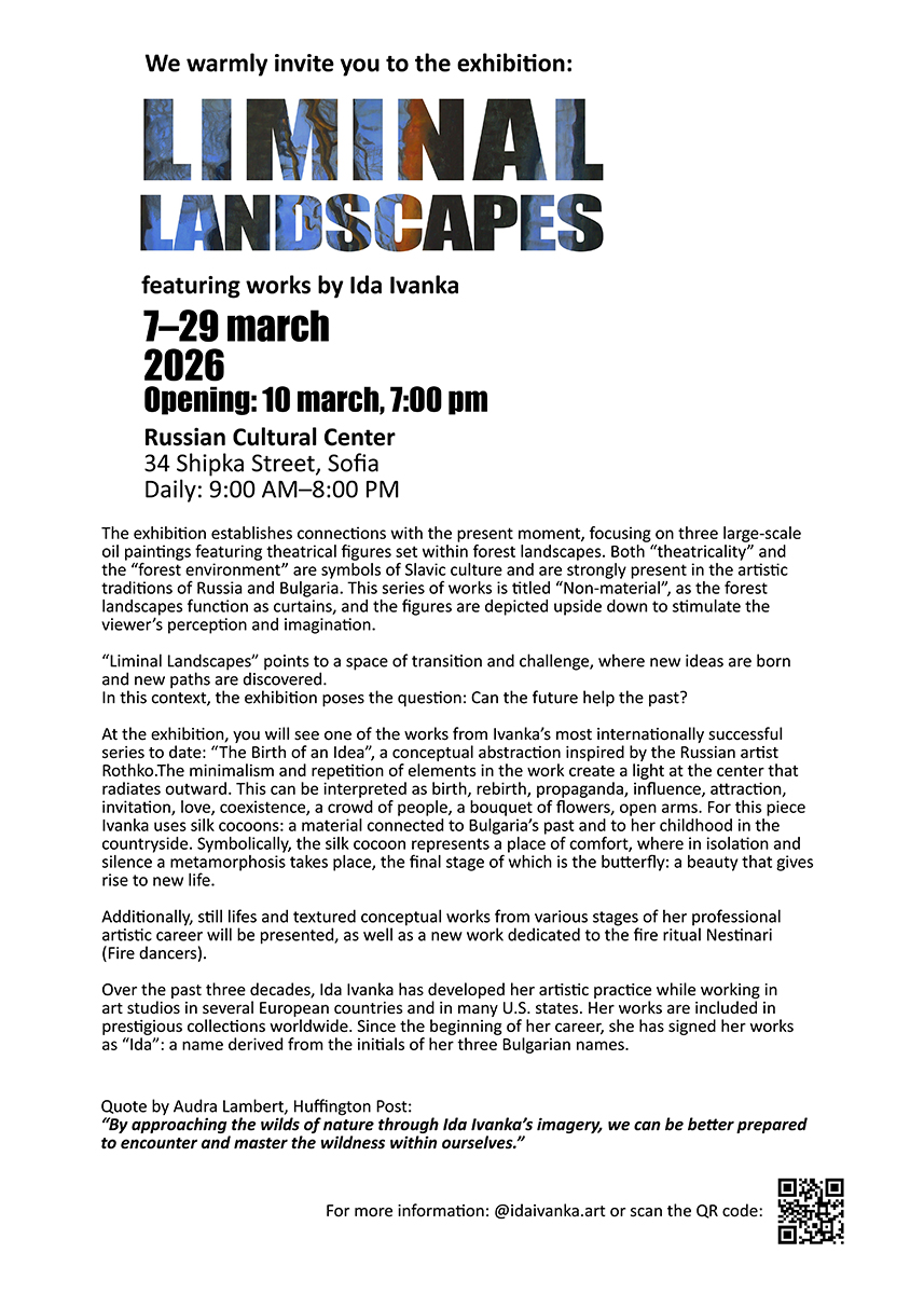 Born in Bulgaria in 1978, Ida pursued her international arts education across three countries and has travelled extensively over the past three decades, developing her artistic practice while working in art studios in several European countries and in numerous U.S. states. She has created work in collectors’ residences, in her own studios, and on the road. Her artworks have also travelled widely and are now held in prestigious collections worldwide, including Australia, India, Guernsey, Switzerland, France, Germany, the Netherlands, Spain, Bulgaria, Norway, Russia, the United Kingdom, and the United States.