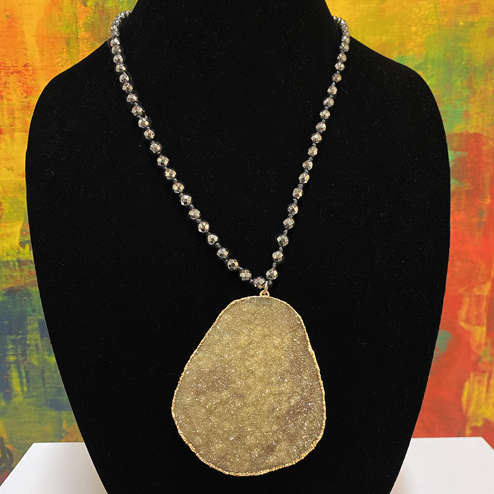 HomeJewelryKathy GelfandNecklacesDruzy on Hematite Necklace by Kathy Gelfand Druzy on Hematite Necklace by Kathy Gelfand$180.00 $180.00 In stock Druzy on Hematite Necklace by Kathy Gelfand quantity Buy now SKU: druzy-on-hematite-necklace-by-kathy-gelfand Categories: Jewelry, Kathy Gelfand, Necklaces Tags: Jewelry, Kathy Gelfand, necklace Product ID: 45595 Description Description Druzy on Hematite Necklace by Kathy Gelfand. Made in NYC. Related products SOLD Out of stock blue zircon, Jewelry, Kathy Gelfand, necklace, soldBlue Zircon Necklace by Kathy Gelfand Read more SOLD Out of stock Jewelry, Kathy Gelfand, necklace, opal quartz, soldPacific Opal Quartz Necklace by Kathy Gelfand Read more SOLD Out of stock Jewelry, Kathy Gelfand, necklace, soldNuts with Gold and Charms, Turquoise Necklace by Kathy Gelfand Read more